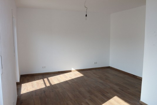 lichtdurchflutetes Wohnzimmer mit Möglichkeit, einen Kamin anzuschließen.