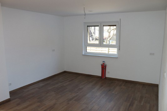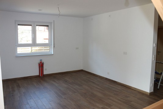 lichtdurchflutetes Wohnzimmer mit Möglichkeit, einen Kamin anzuschließen.
